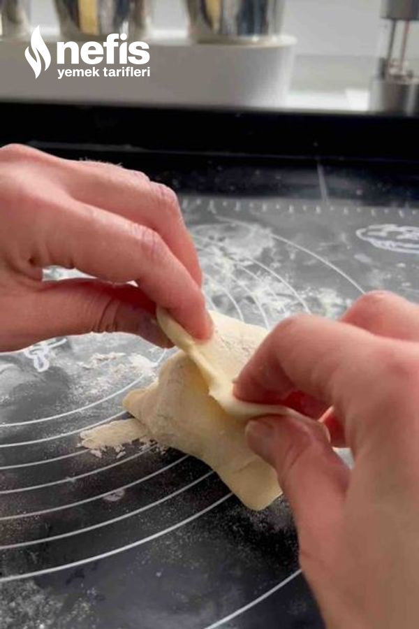 8. Hamurun alt kısmını üst hakikat kapatın, akabinde üst kısmı da üzerine kapatın.