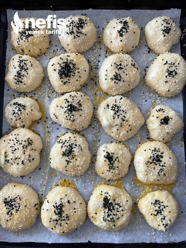 18. Son olarak çörek otu ve susam serperek alt üst ayarda çalıştırdığımız 185°c fırında yaklaşık 20 dakika kadar denetimli bir biçimde pişmeye bırakalım.