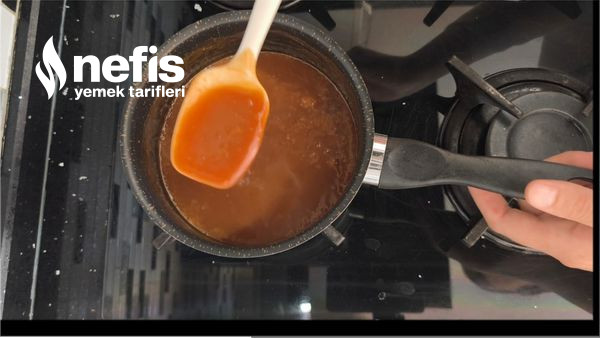 6. Karamel sosu için; şekeri altın rengi kıvamına gelene kadar eritelim ve tereyağı kremayı ekleyip soğumaya bırakalım karamel muhakkak dolaba koymayın.