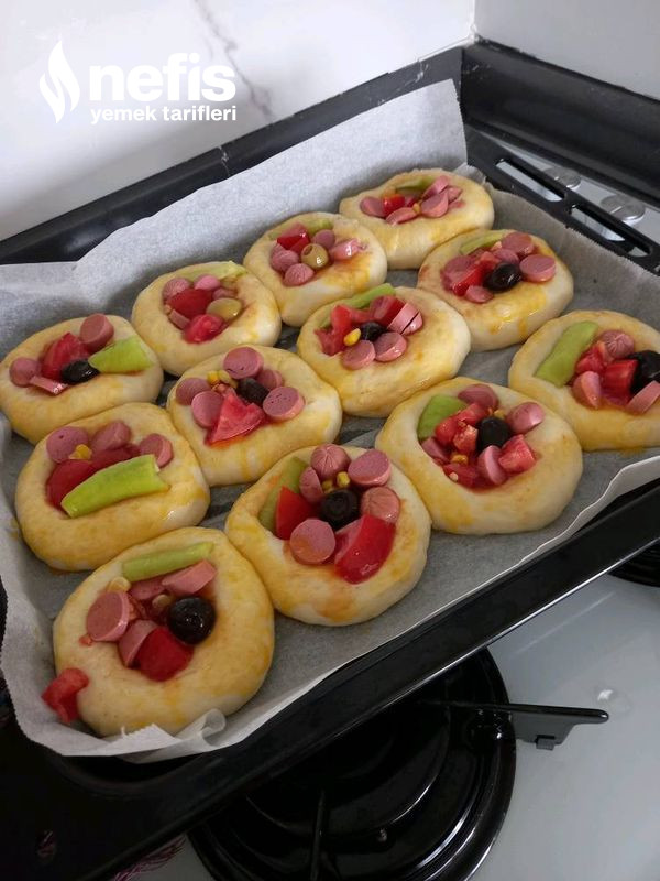 5. Önceden ısıtılmış 200 derecede fansız alt üst kızarana kadar pişirelim. Ben kızımın beslenmesi için çeşitlendirdim biçimleri sandviç, açma ve pizza poğaça üzere.