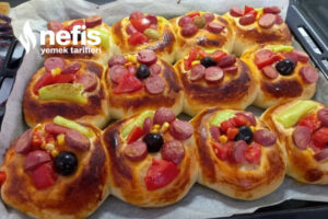 4. Tepsi mayası geldikten sonra üzerine bastırıp istediğiniz malzemeyi koyabilirsiniz.