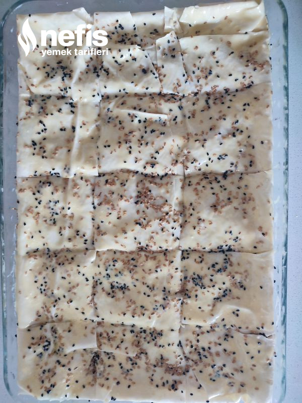 - Üzerine yoğurt, sıvı yağ ve yumurta sarısını çırpıp fırça ile çokça sürün. Susam ve çörek otunu isteğe nazaran serpelim. Böreğimizi bıçak ile dilimleyelim.