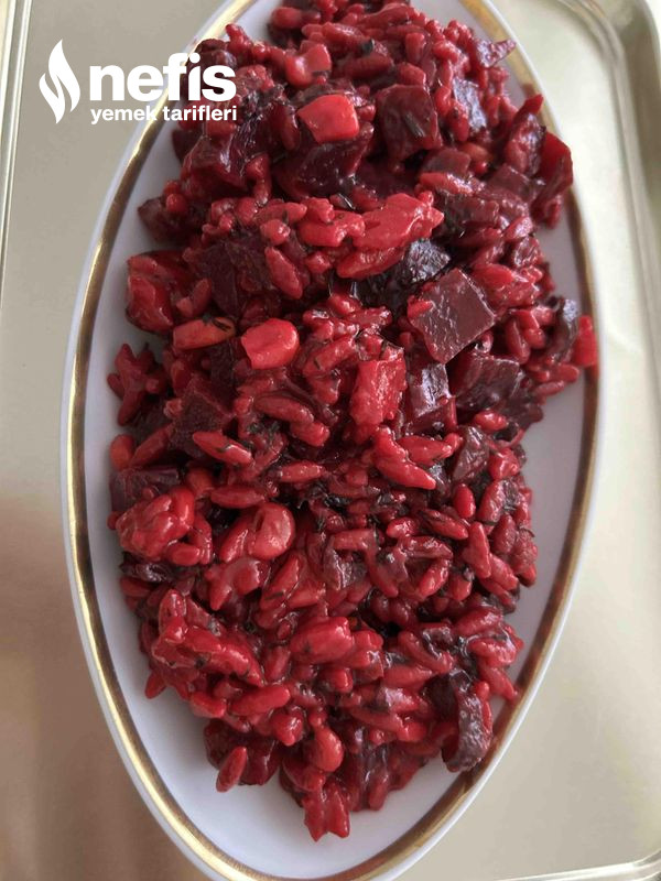 - Şehriye ve pancar tüm suyu çekip piştikten sonra derin bir kaba alıp mısır, küçük küçücük doğranmış kornişon turşu ve ince kıyılmış dereotunu ekleyip karıştırıyoruz.