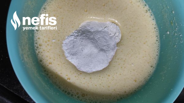 - Yumurta ve şeker köpük köpük olup rengi açılıncaya kadar çırpılır.