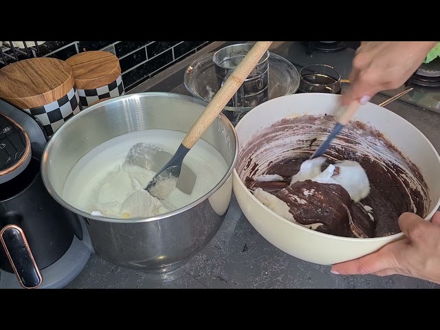 - Köpük halindeki yumurta beyazını da görüntüdeki üzere yavaşça ekleyip, aşağıdan üste hakikat spatula yardımı ile yedirerek karıştırın.