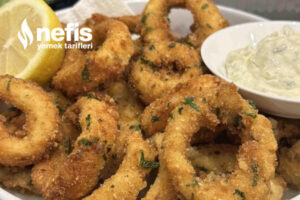 9. Kalamarın üçte birini yağda 1–2 dakika, altın rengi olana kadar kızartın.