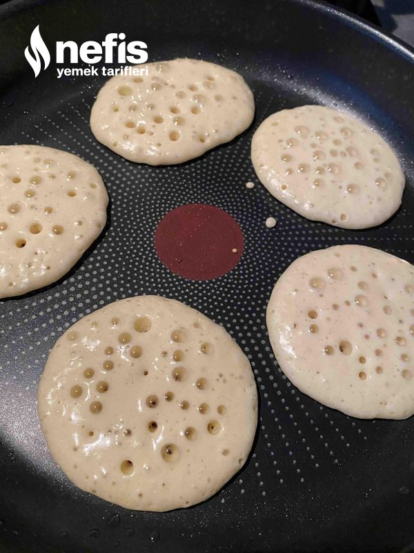- Yağladığımız tavaya bir yemek kaşığı hamurdan koyalım ve gerili önlü pişirelim.