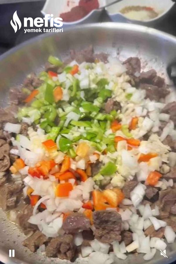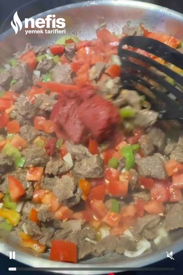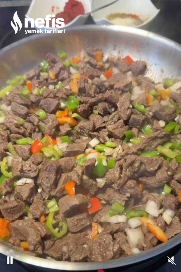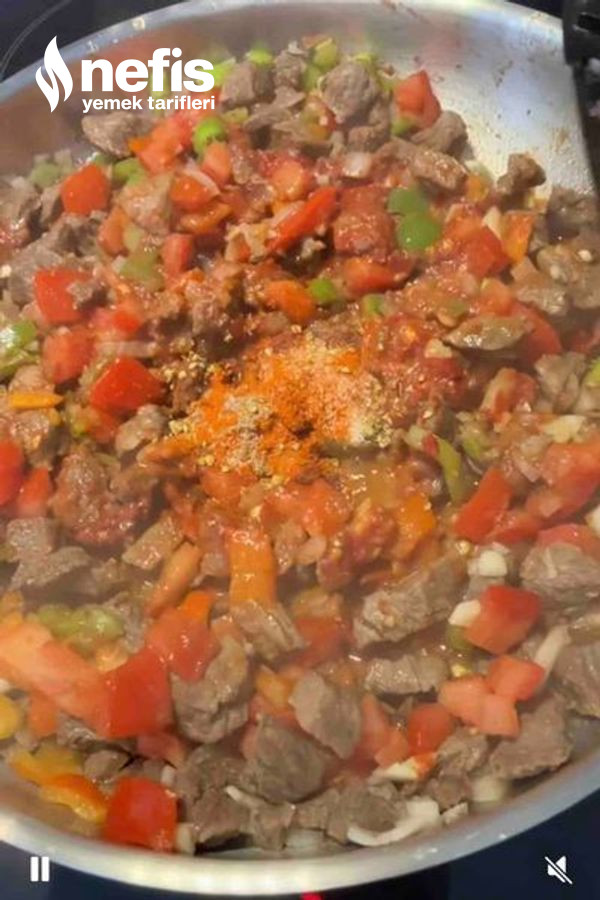 - Üzerine yarım su bardağı su ek edip, kaynayınca 10 dk kadar pişirip kenara alın. ( etiniz sert olursa biraz daha pişirin).