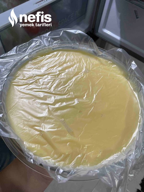 - Kremamız kıvam alıp, kaynadıktan sonra altını kısıp 1 dakika daha karıştırıyoruz. Sonrasında tereyağı ekleyecekseniz tencereyi ocaktan alıp, içerisine tereyağını atıp karıştırabilirsiniz. Kremayı farklı bir kaba alıp üzerini streçliyoruz ve oda sıcaklığına geldiğinde dolaba atıyoruz.