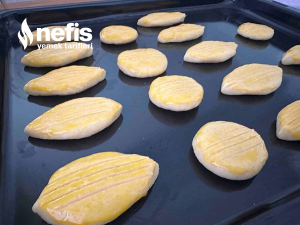 5. Hamurdan modüller koparıp biçim verelim ,üzerine yumurta sarısı sürelim fırça yardımı ile üstüne çatalla çizik atın.