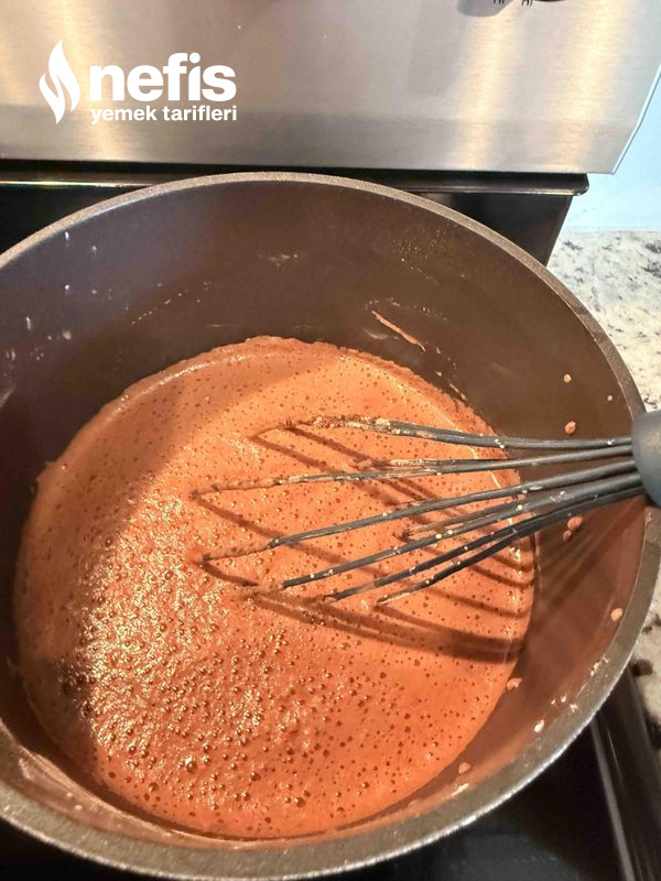 - Süt, krema, şeker, kakao, nişastayı tencereye ekleyip, daima karıştırarak pişirelim. Ağırlaşınca ocağın kapatalım.