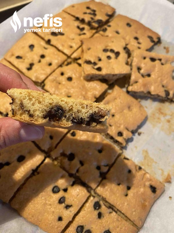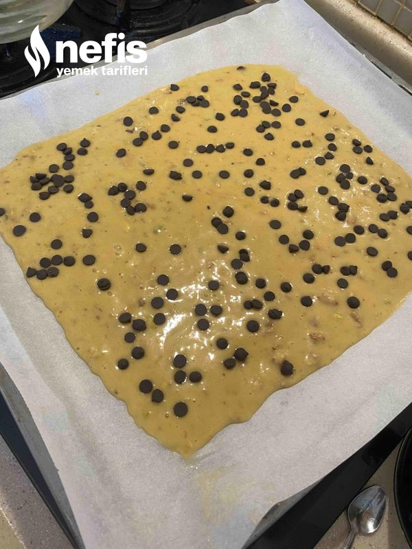3. Üzerine damla çikolata serpiştirelim 180 derece fırında üzeri biraz üzeri kızarana dek pişirelim.