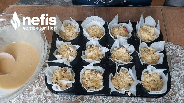 - Yağlı kağıttan hazırladığımız kalıpları cupcake kalıbın içerisine alarak yarısını geçecek kadar kek hamurundan üzerine kırmızı meyveleri çikolata son olarak da kırıntıyı ek ederek 190 derece evvelce ısıtılmış fırında keklerimizi pişirerek servis edelim ,afiyetler olsun ayrıntılı tanım için tıklayınız.
