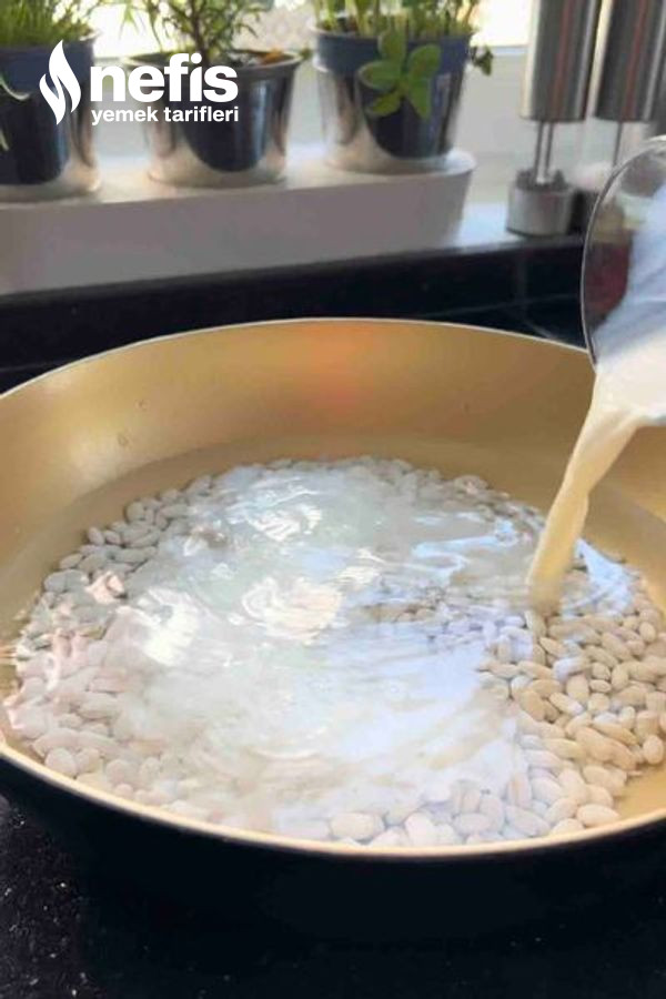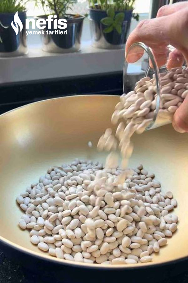 - 400 gram kuru fasulye (1 gün evvelce 1 l su + 100 ml süt ile ıslatılır)