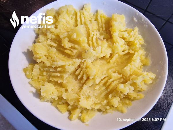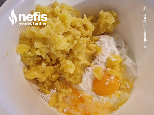 1. Haşlanmış ve soğutulmuş patatesler ezilir, daha sonra yoğurt ve yumurta sarılarıyla karıştırılır.