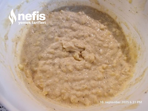 3. Yumurta beyazları başka bir kapta kar haline getirilerek çırpılır ve dikkatlice hamura yedirilir ve kenarda 15 dakika dinlendirilir.