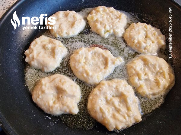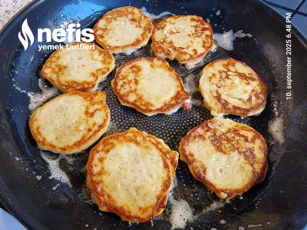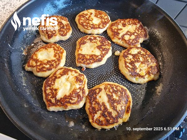 4. Hazır olan hamurdan istenilen büyüklükte kaşık yardımıyla tavaya konur ve tereyağında gerili önlü güzelce pişirilir.