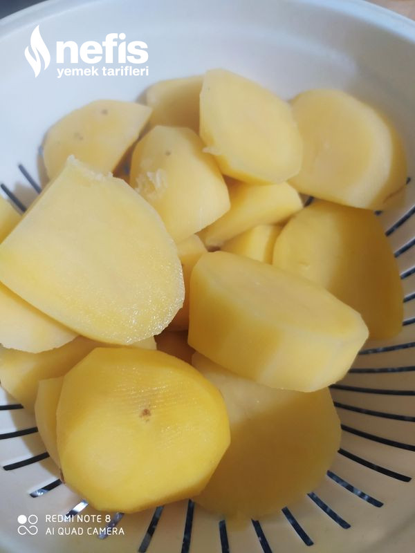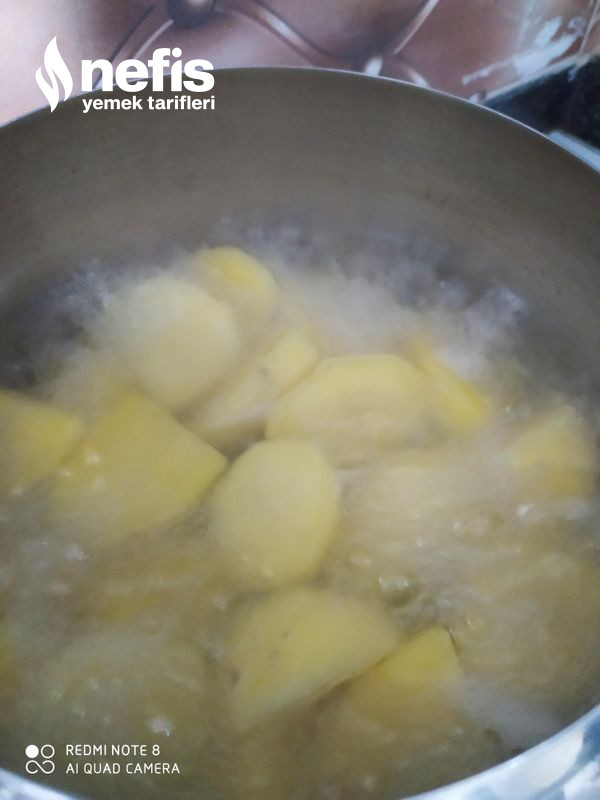 - İlk olarak patatesleri soyup üçe bölüp tencereye su ekleyip kaynatalım.