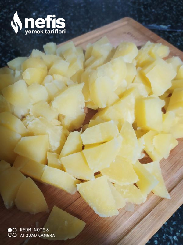 - Daha sonra haşlanan patatesleri doğrayalım.