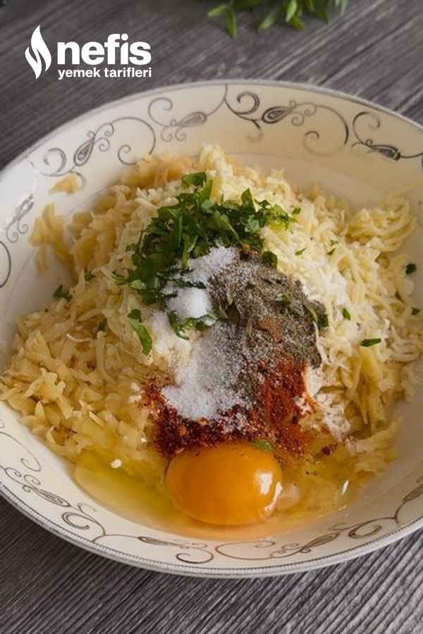 - Patatesi rendeleyip geniş bir kabın içerisine alalım.