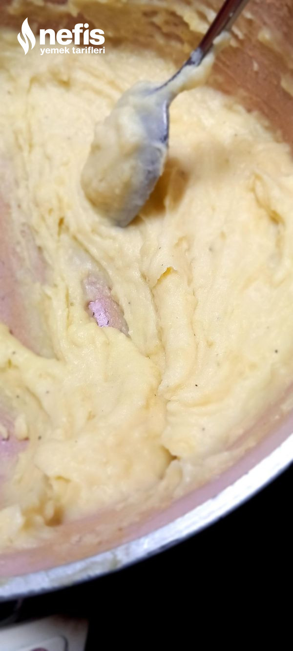 - Öncelikle patatesler haşlanır ve püre haline getirilir.