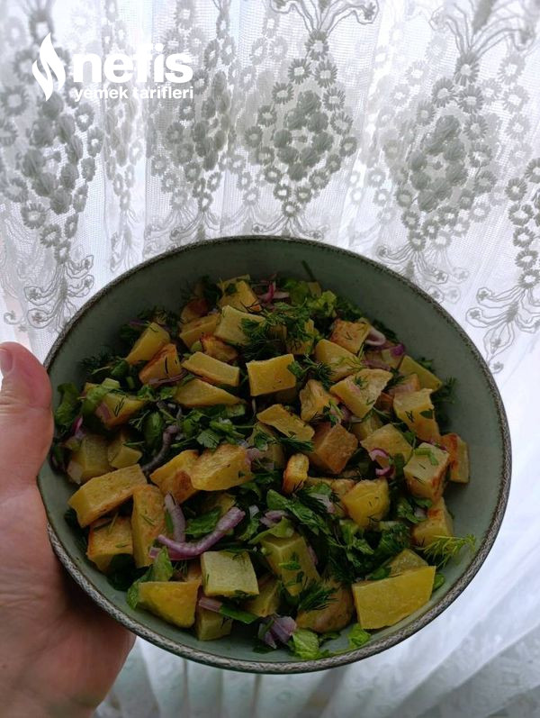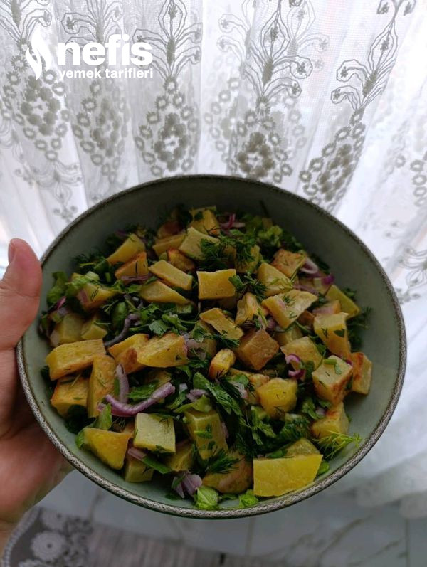 - Pişen patateslerin sıcağının çıkmasını bekleyelim. Ilıyınca onu da salataya ekleyelim.