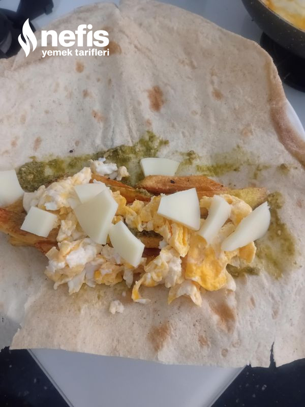 3. Kızaran patatesimizi lavaşımızın içine alalım yumurtamızı az yağ olcak formda tavada pişiriyoruz yani yağda yumurta yapıyoruz .