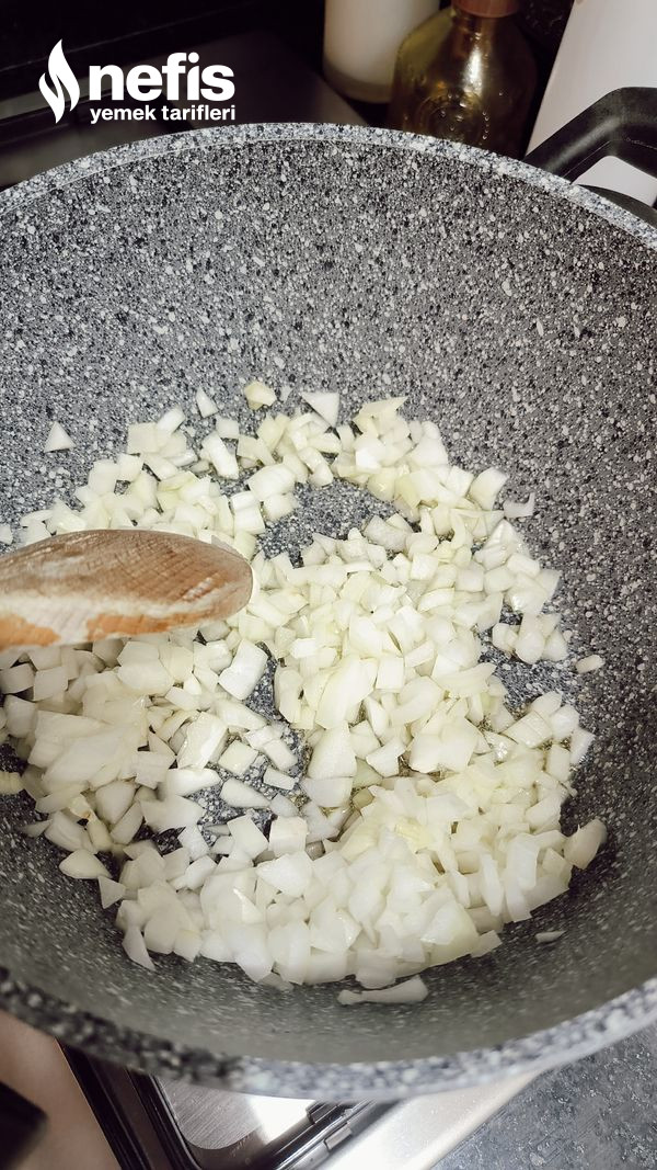 - Soğanı yemeklik doğrayın, yağda 2-3 pembeleşene kadar kavuralım.