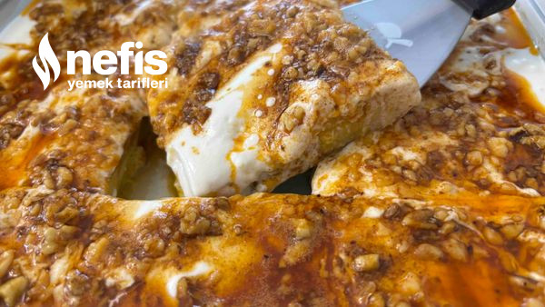 - Pişen böreğimizin üzerine birinci sıcaklığı çıktıktan sonra yoğurt sosunu gezdirelim.