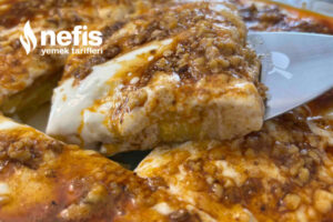 - Pişen böreğimizin üzerine birinci sıcaklığı çıktıktan sonra yoğurt sosunu gezdirelim.