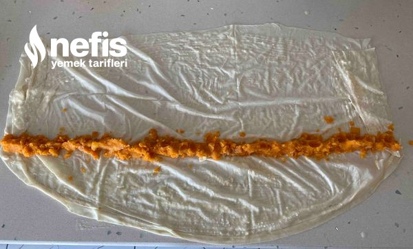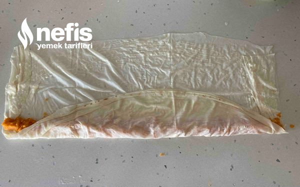 - Yufkanın içine patatesleri benim üzere yada serpiştirin. Rulo biçiminde saralım.