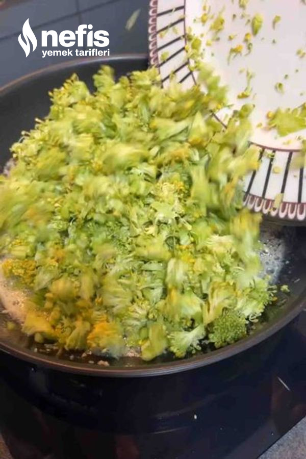 - Brokolileri ekleyip kısık ateşte beş dakika kadar karıştırarak kavurun.