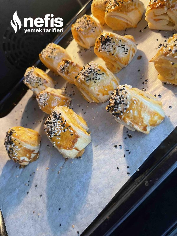 3. Milföylere sürelim ve üzerine kaşar ekleyelim.