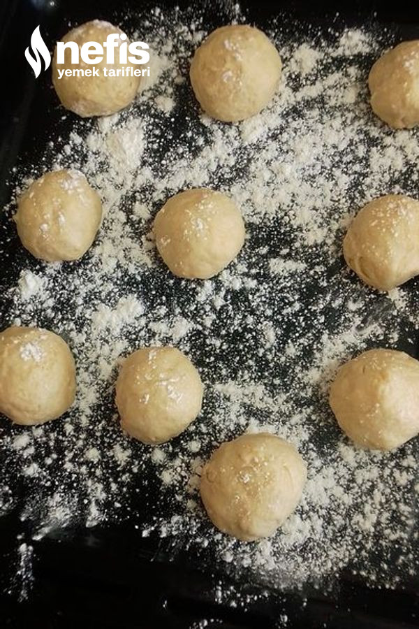 - Hamuru küçük bezeler haline getirip un serptiğimiz tepsi üzerinde streçleyip, üzerini bir örtü ile kapatarak 1 saat bekletiyoruz.