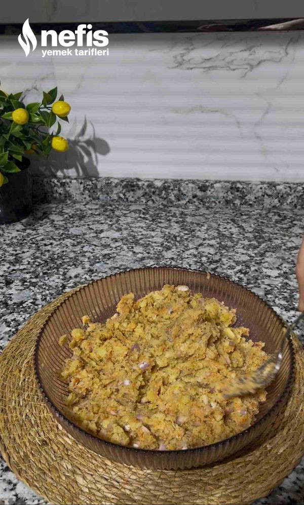 - İç harcı için patatesleri haşlayalım ,soğanı ince ince doğrayalım, baharatlar ekleyip karıştıralım.