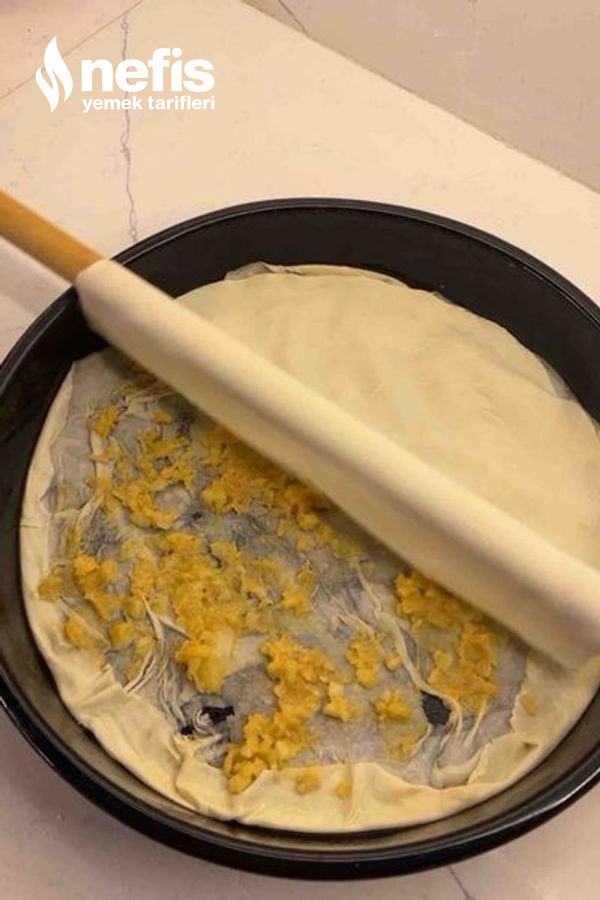- Yağladığımız fırın tepsisinin üzerine birinci yufkayı seriyoruz.