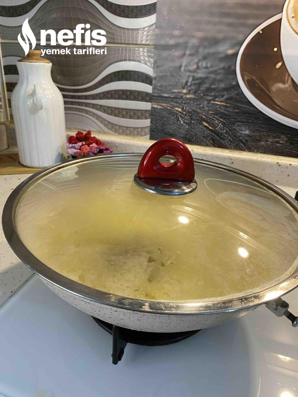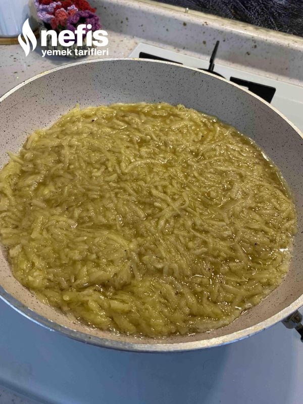 - Pişireceğimiz tavanın içerisine 2 yemek kaşığı sıvı yağ koyalım, ısınınca yaptığımız içeriği koyup, düzleyelim ve bir kapak kapatıp aşağı üst 10 dk kadar kızarana kadar pişmeye bırakalım.