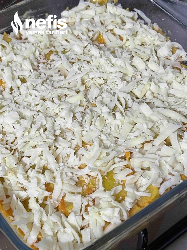 - Üzerine rendelenmiş kaşar peyniri serpip evvelce ısıtılmış 200 derece alt üst ayarda fırında kaşar eriyip kızarana kadar pişirelim.
