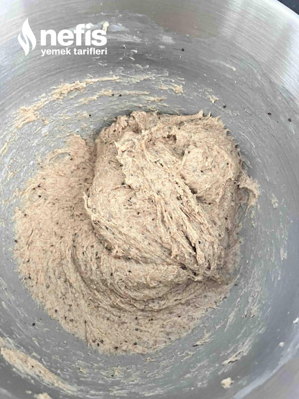 2. Geniş bir kapta tam buğday unu, chia tohumu, hindistan cevizi rendesi,mahlep, muskat ve tuzu karıştıralım.