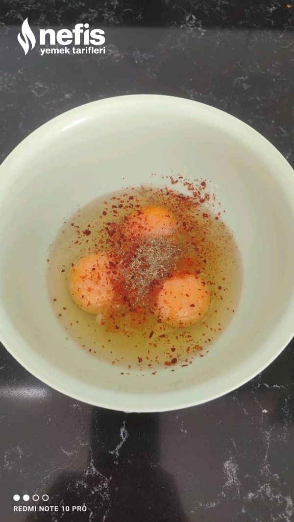 6. Baharatları ekledikten sonra yumurtayı çırpıp tavaya dökelim. Pişen yumurtayı servis edebiliriz. Deneyen herkese afiyet olsunn. 😌😌
