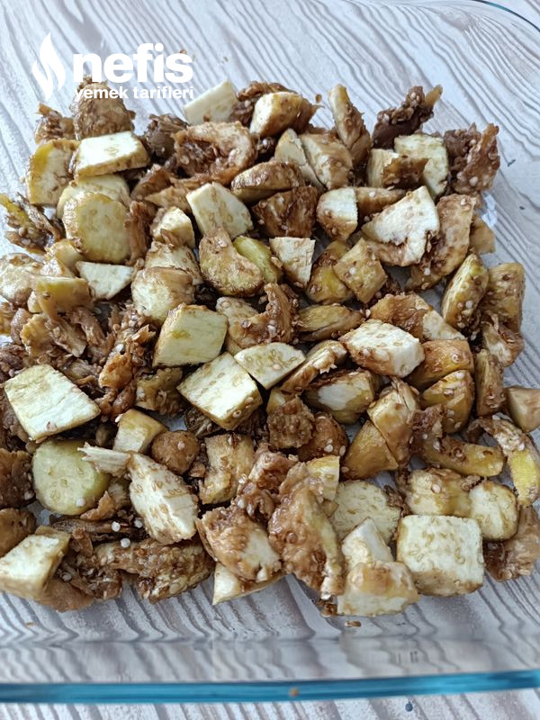 - Patlıcan içlerini gelişi hoş doğrayıp bir tepsi yada kaseye alalım.