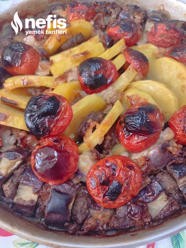 4. Fansız fırında 200° de 1 saat kadar denetimli olarak pişirelim. Deneyecek olanlara afiyet olsun 🌼 ( benim çocuklarım patates de sevdiği için patatesli de yaptım. Patlıcan yerine patates ekledim öbür fark yok)