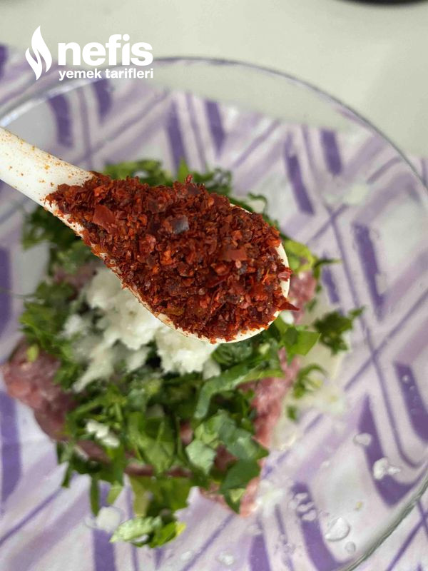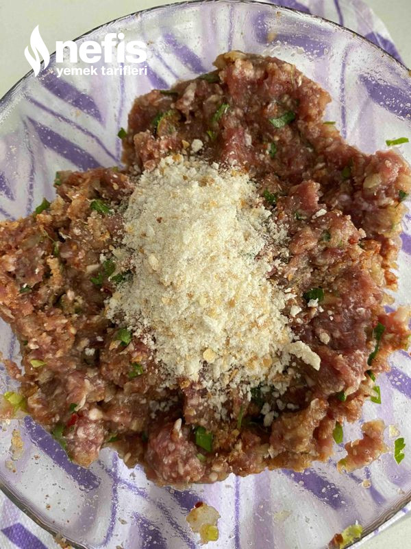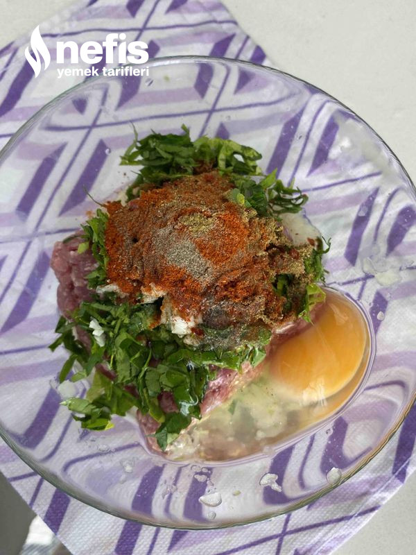 5. Uygun bir yoğurma kabına kıyma, soğan, sarımsak, yumurta, maydanoz, ekmek içi ve baharatları alarak güzelce yoğuralım.