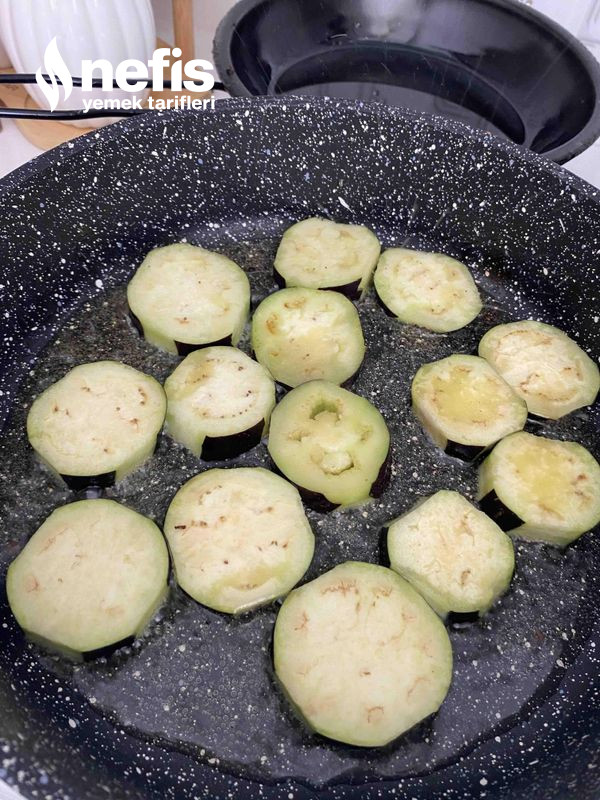 3. Tavaya sıvı yağ alalım ve kuruladığımız patlıcanları tavaya alıp çevirerek kızartalım.
