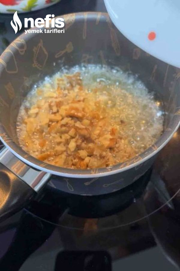 - Sosu için sos tavasına yağları ekleyin ısınınca cevizleri ekleyip biraz kavurun.