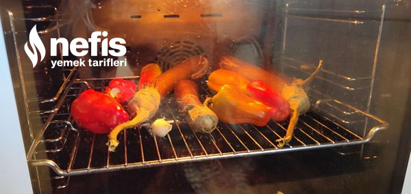 1. Önce fırında patlıcanı, kırmızı biberi, sarımsağı 250c fırında 25-30 dk pişirelim.