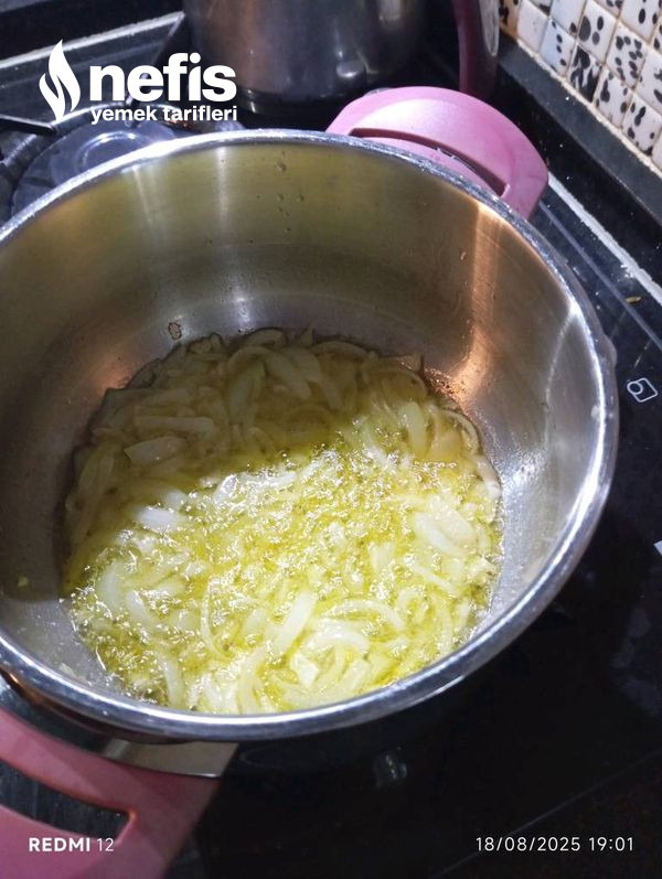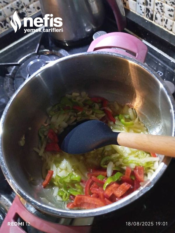 - Başka bir tencerede soğanları pişirilir ve üzerine biber eklenip, mühürlenmesi beklenir.
