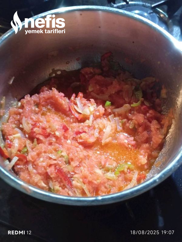 - Doğranan domates ve sarımsaklar eklenerek, pişirilir.