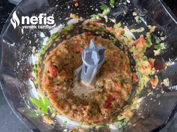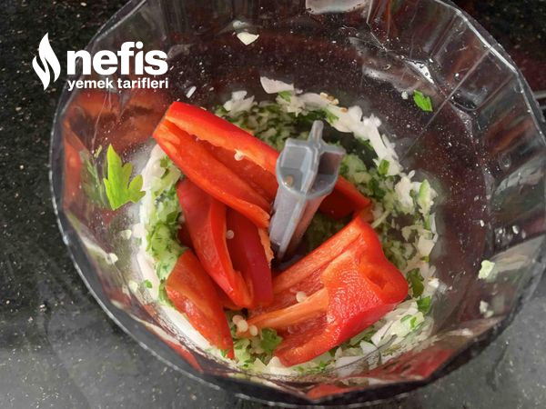 - Soğan,sarımsak,maydanoz,kırmızı ve yeşil biberimizi rondoya alıp çekelim.