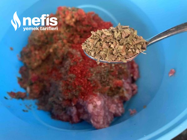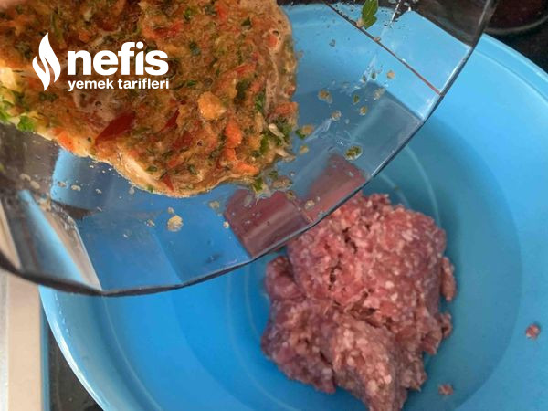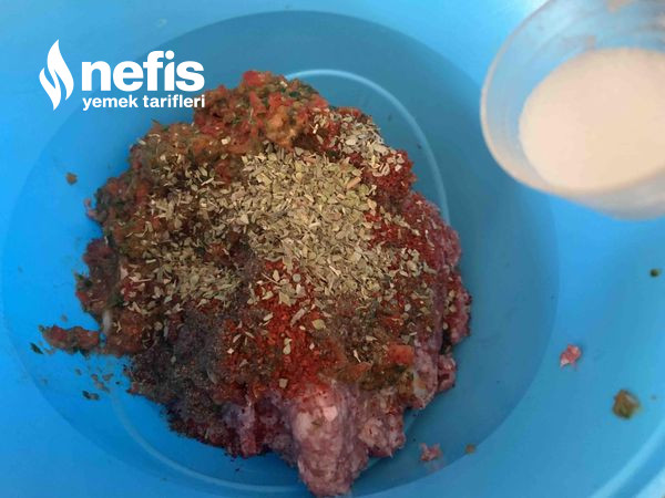 - Kıymayı bir kaba alıp üzerine bu karışımı ve baharatlarımızı ekleyip güzelce yoğuralım.